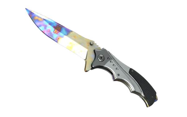 This ergonomic tactical hunting lock-blade knife features composite handle inserts and a broad, sturdy blade, useful for cutting and prying apart material.